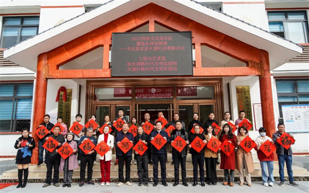 “兔年大吉喜气扬,红妆对联新春迎”。2023年春节将至,为传递新春祝福,丰富和活跃群众文化生活,增添新春喜庆氛围,2023年1月14日,三明市艺术馆文化志愿者,在市文化和旅游局党组成员、副局长庄瑞峰的带领下,来到陈大镇大源村开展传统文化进社区活动,活动由三明市艺术馆、陈大镇新时代文明实践所、大源村文明实践站共同主办,活动主题为“福兔呈祥迎新春”,市艺术馆书记、馆长洪明升,大源村书记范铭根,市艺术馆副馆长、市舞协主席丁雪芹、市美协主席郭舒等参加活动。