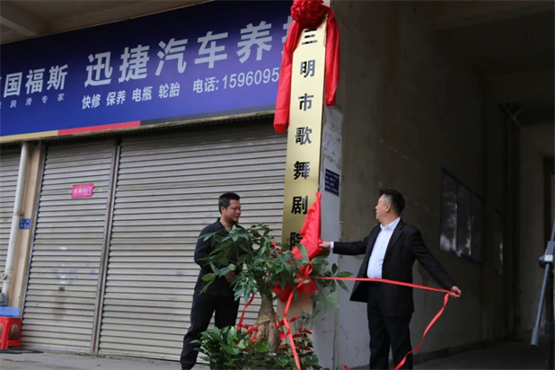 3月8日上午,三明市歌舞剧院揭牌仪式在三元区红印山歌舞大楼举行。市文化和旅游局党组成员、副局长罗振青以及相关科室负责人、市客家文化艺术中心全体演职人员参加揭牌仪式。