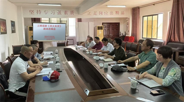 4月17日,三明话剧《淬火长河》剧本改稿会在福州举行。本次改稿会邀请了原省文化厅副巡视员、编审齐建华,省艺术研究院原书记、副院长、一级编剧周长赋,省艺术研究院原副院长、一级编剧周明,省艺术研究院院长、研究员白勇华,省艺术研究院副院长、一级文学创作傅翔,省艺术研究院一级编剧姚晓群、二级编剧蔡福军参加。