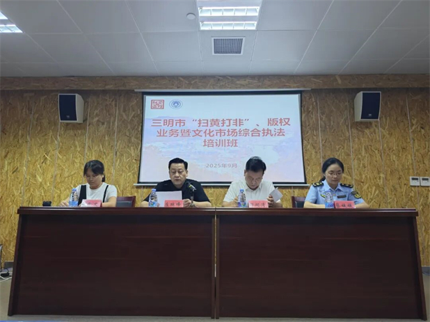 9月18日-19日,三明市“扫黄打非”办联合市文化市场综合执法支队举办2025年“扫黄打非”、版权业务暨文化市场综合执法培训班。市直“扫黄打非”相关单位联络员、市文化市场综合执法支队全体执法人员、各县(市、区)文旅局“扫黄打非”分管领导、版权业务骨干、执法业务骨干等80余人参加。同时,为进一步落实东西部对口交流协作,促进执法经验互学互鉴,培训还邀请了贵州省六盘水市文化市场综合执法骨干一同参与。市文旅局副局长庄瑞峰出席开班式并做讲话。