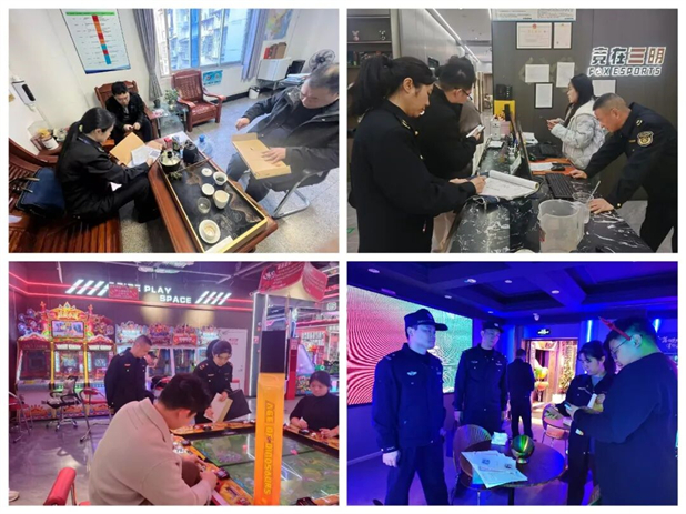 一是提前部署,有序推进。召开专题队务会,围绕节假日期间文旅市场活跃等特点,分析研判市场风险隐患,明确检查任务分工,确保各项检查工作科学统筹、有序推进。二是突出重点,精准发力。以合规经营、安全生产等重点内容,联合区文旅局、公安局,对网吧、歌舞娱乐场所、营业性演出活动、旅行社开展专项检查。同时注重节假日期间文化市场意识形态安全,依法打击销售、印制非法出版物等违法违规行为,全力规范市场经营秩序。12月24日以来,市支队共检查各类经营场所共19家次,配合公安、城管劝退1场通过野生动物表演的占道经营行为。三是强化普法,增强意识。履行“谁执法谁普法”的普法责任制,将普法宣教工作融入日常执法检查当中,面向不同行业经营特点,有针对性地开展普法工作,并加强风险提醒,督促经营业主依法依规经营。
